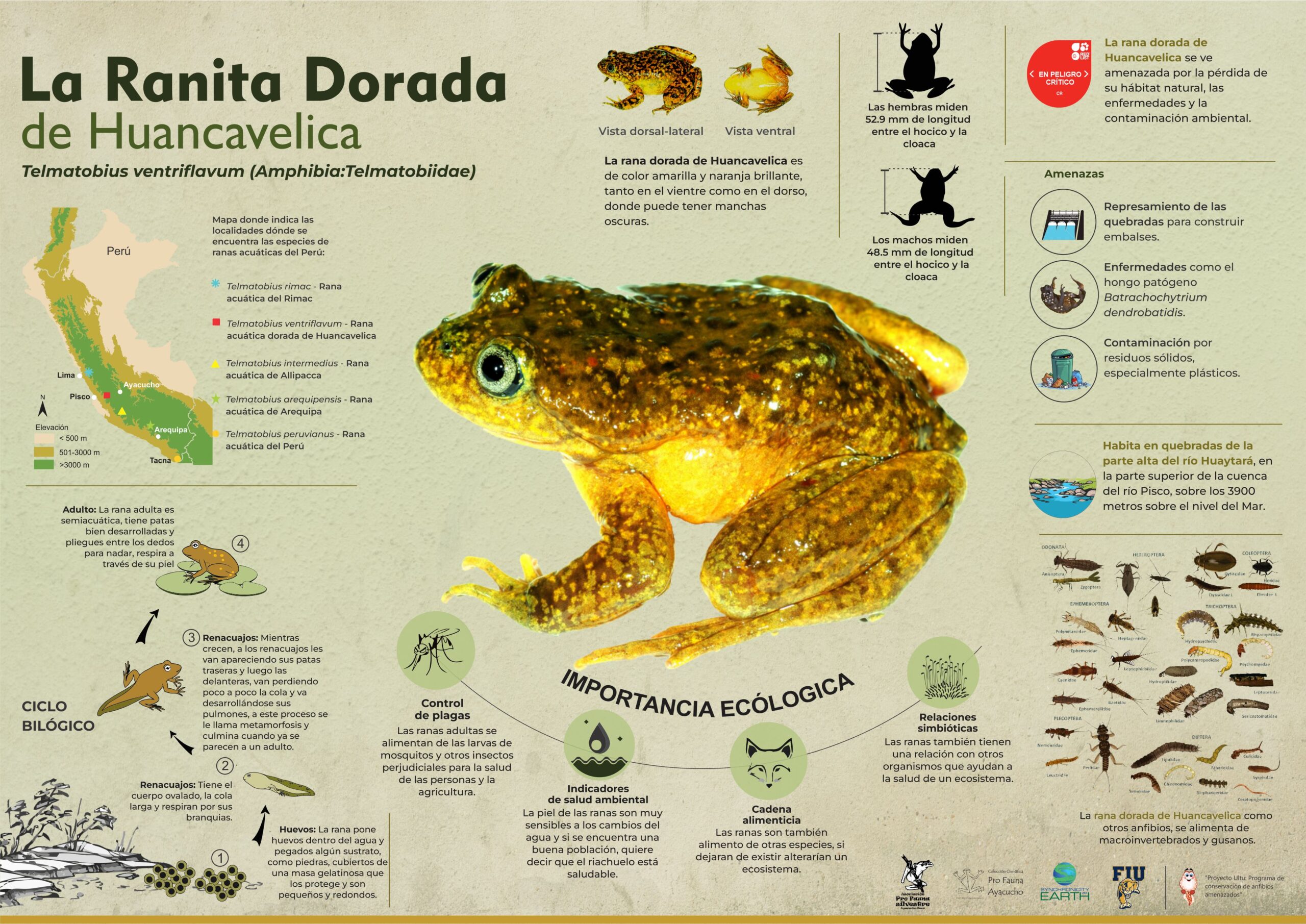 Conoce a la Rana Dorada de Huancavelica (Telmatobius ventriflavum), especie endémica de los Andes en Peligro Crítico. Este video busca sensibilizar a niños sobre la importancia ecológica y las amenazas que enfrenta su hábitat natural